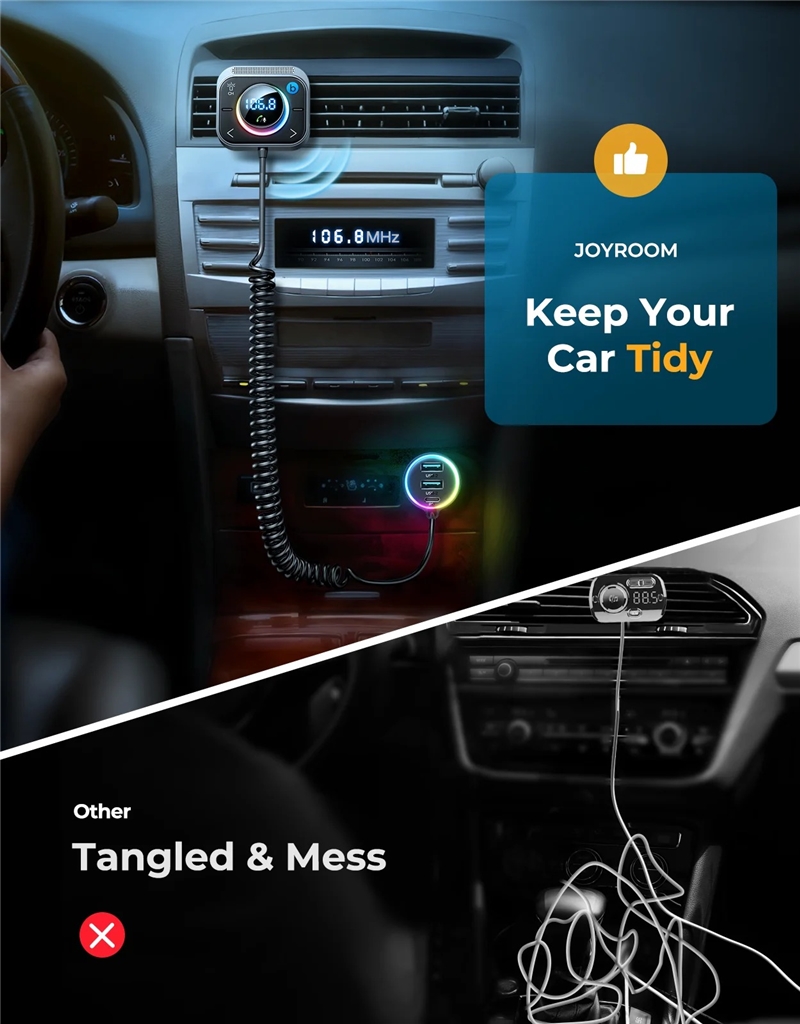 شارژر فندکی 30 وات و پخش کننده بلوتوث جویروم JOYROOM CARE WIRELESS AND FM TRANSMITTER JR-CL18