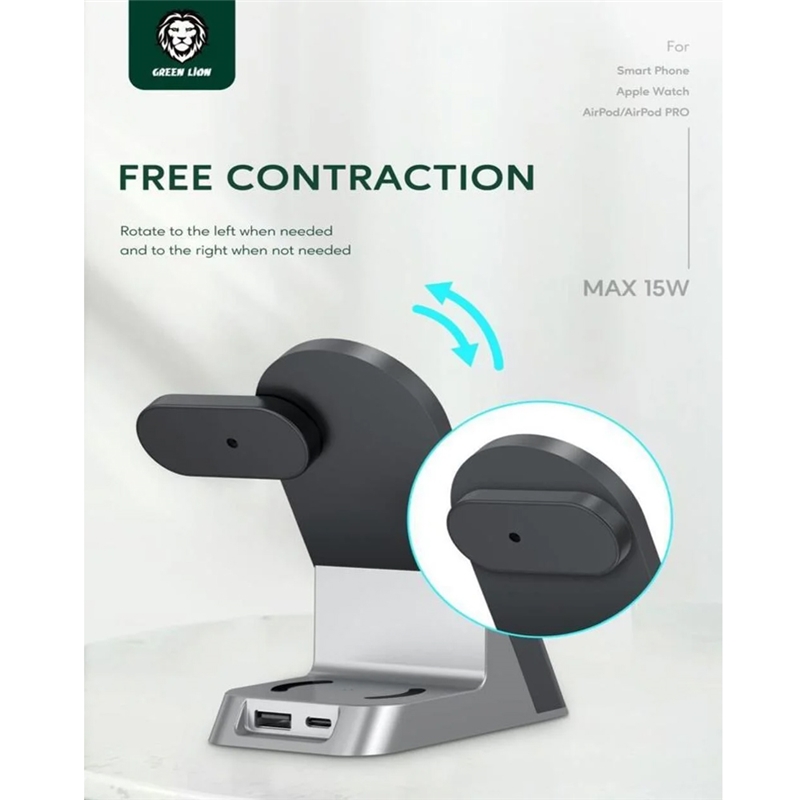 استند و شارژر وایرلس گرین Green 6 in 1 مدل GN6IN1WFCBK