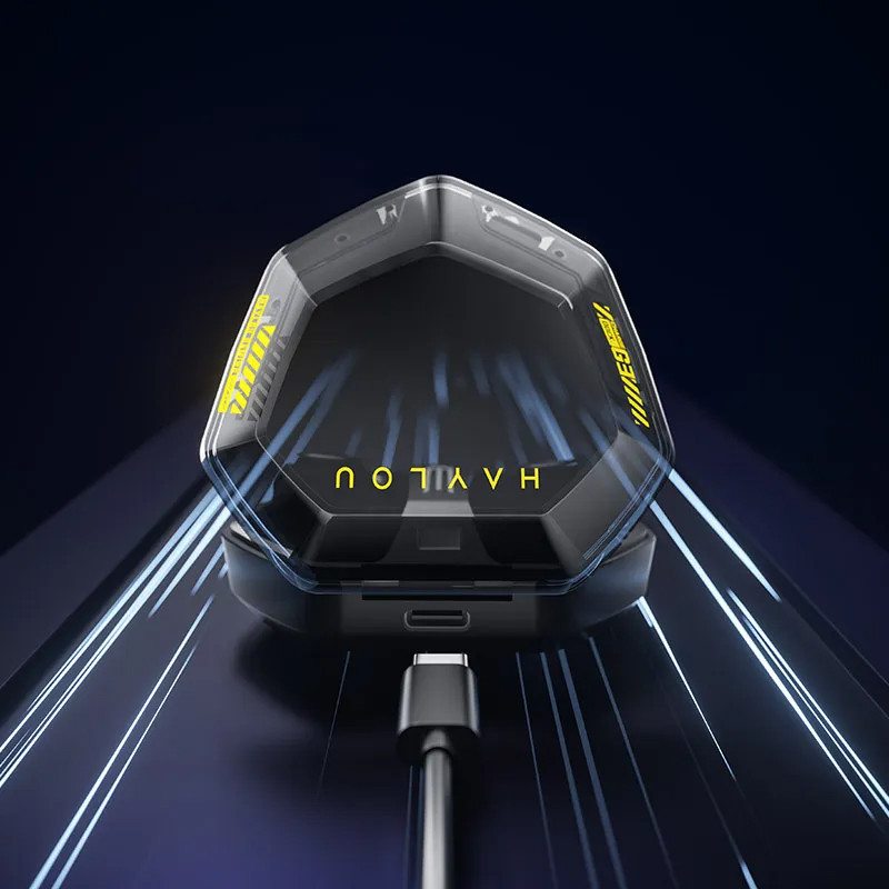 در نمای ظاهری هندزفری گیمینگ Haylou G3 نورپردازی کوچکی از نوع RGB روی گوشی ها و کیس شارژ خودنمایی می کند. کیس شارژ دارای اندازه مناسبی است.
