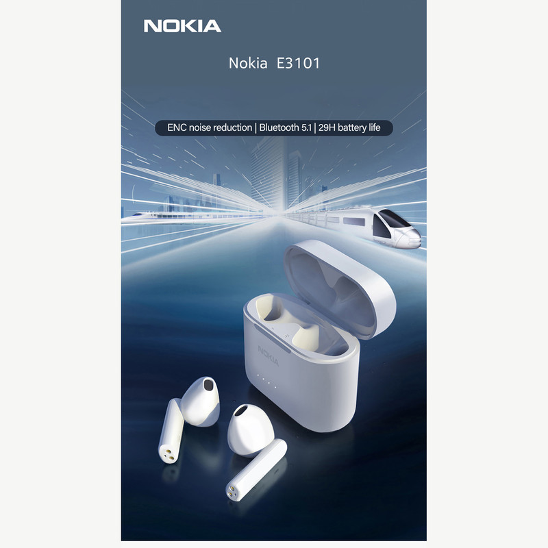 هندزفری بلوتوث Nokia E3101 ، یک هندزفری بلوتوث دو گوش با وزنی سبک، قابلیت حذف نویز مکالمه ENC و بلوتوث 5.1 است که به صورت Semi-In-Ear طراحی شده و امکان شارژدهی تا 20 ساعت را دارد.