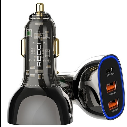 شارژر فندکی شفاف 93 وات رسی Recci Journey Transparent Car Charger RCC-N18