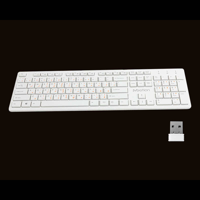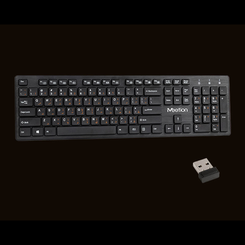 کیبورد Meetion MT-WK841 با دانگل به صورت وایرلس به سیستم شما وصل می شود و تا 10 متر برد دارد. این کیبورد با ویندوز XP/Vista/7/8/10 و MAC OS سازگار است. طراحی کیبورد بی سیم میشن MT-WK841 ارگونومیک است.