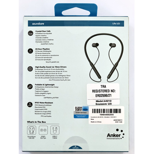 هندزفری بلوتوثی گردنی انکر مدل Life U2i از جنس پلاستیک فشرده و TPE ساخته شده است و از نظر طراحی ظاهری طراحی جذاب و زیبایی دارد. بر روی سمت چپ این گردنی کنترلر آن موجود است. کیفیت کابل استفاده شده در این هندزفری با وجود استفاده از هسته مسی متراکم و رویه با دوام از کیفیت خوبی برخوردار است. در محل های اتصال به گوشی های این هندزفری از پلاستیک استفاده شده که تا آسیبی به کابل وارد نشود.
