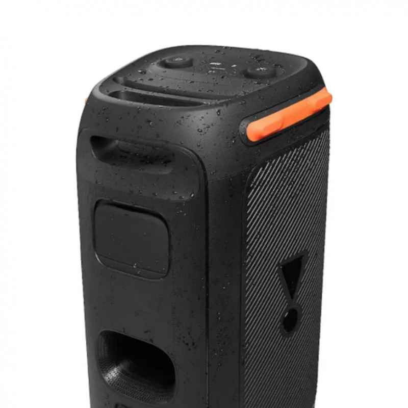 اتصال بیسیم به پارتی باکس 110 از طریق بلوتوث 5.1 برقرار میشود. این نسخه از بلوتوث عملکرد پایدارتر و البته کم مصرفتری نسبت به نسخههای قبلی دارد و همین باعث میشود کمترین قطعی هنگام اتصال اتفاق بیفتد. حداکثر توان خروجی این مدل برابر با 160 وات و محدوده فرکانس پاسخگویی برابر با 45 تا 20 هزار هرتز است. این حجم صدا برای خانهای با اندازه متوسط کاملا کافی است و میتواند حال و هوای بسیار خوبی به مهمانی شما ببخشد. طبق انتظاری که از JBL داریم کیفیت صدای اسپیکر بلوتوث partybox 110 نیز عالی است و جزئیات به طور دقیق و کامل شنیده میشود و بیس نیز بسیار مطلوب است. صدای پخش شده توسط این اسپیکر اعوجاج بسیار کمی دارد و در ولومهای بالا نیز اسپیکر تلاش میکند تا کیفیت خود را حفظ کند.