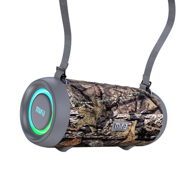اسپیکر میفا مدل A90 شباهت زیادی به اسپیکرهای شرکت JBL دارد و در این مدل شاهد طراحی استوانهای هستیم. این محصول با ابعاد 250.4 در 115.2 در 106.2 میلیمتری و وزن 1173 گرمی گزینه مناسبی برای حمل و نقل است و برای راحتی بیشتر از یک بند بلند بهره میبرد تا بتوان آن را مانند یک کیف رودوشی جابجا کرد. این اسپیکر در دو طرف از 16.8 میلیون پیکسل چراغهای LED استفاده میکند و به لطف همین موضوع میتواند به دو حالت مختلف جلوههای ویژهای را به نمایش بگذارد. در یکی از حالتها اسپیکر با ریتم آهنگ هماهنگ میشود و در مدل دیگر با تولید رنگهای مختلف جلوه خاصی به محیط میبخشد.