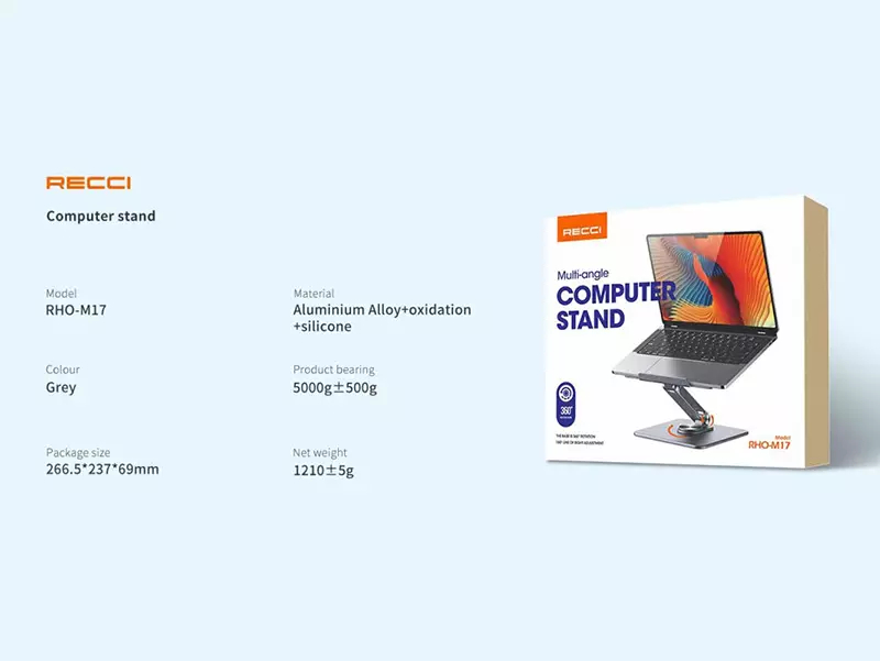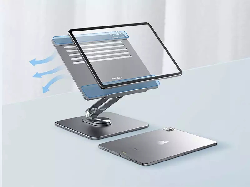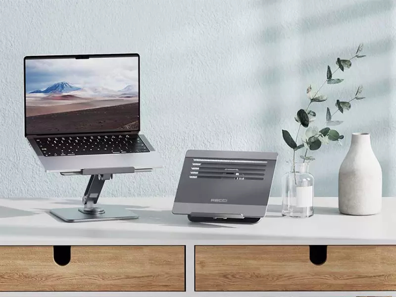 پایه نگهدارنده لپ تاپ رسی Recci RHO-M17 قابل استفاده برای انواع برندهای لپتاپ، تبلت و نوتبوک بوده و میتوانید بدون احساس ناراحتی در ناحیه گردن و کتف ساعتها کار کنید.