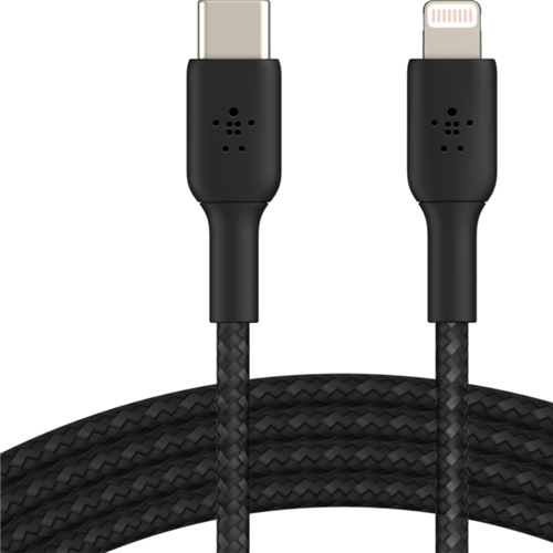 کابل شارژ سریع USB-C به لایتنینگ با روکش بافته بلکین مدل CAA004bt2MBK طول 2 متر