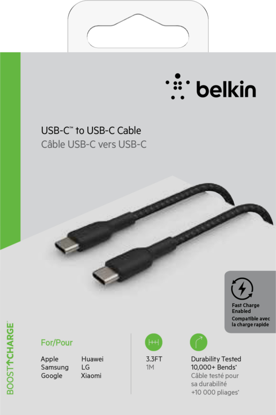 کابل شارژ سریع USB-C به USB-C با روکش بافته بلکین مدل CAB004bt1MBK طول 1متر