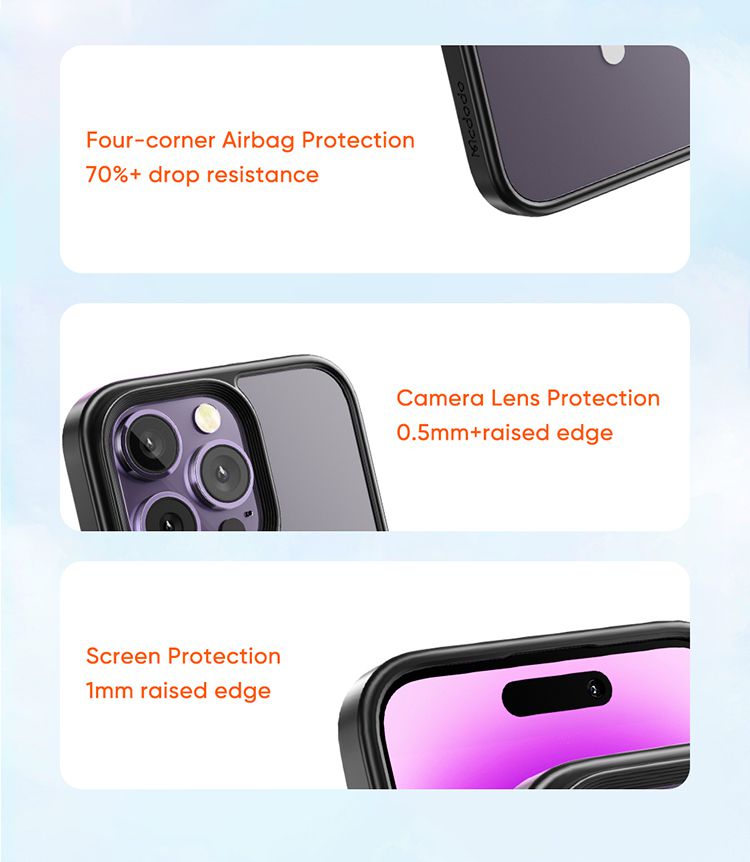 دارای ایربگ و کپسول های هوا تعبیه شده داخلی در چهارکنج قاب جهت حافظت بالا در برابر سقوط گوشی از ارتفاع و ضربه های شدید.
