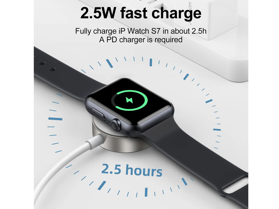 درون این شارژر وایرلس اپل واچ آهنربای قدرتمند 3200GS قرار گرفته و با قدرت بالایی ساعت هوشمندتان را جذب خود میکند و با شدت جریان 2.5 وات به شارژ آن میپردازد. از قابلیت شارژ سریع برخوردار بوده و قادر است باتری iP Wath S7 را در حدود 2.5 ساعت فول شارژ کند. فناوری PD در برنامهریزی ساختاری آن وجود دارد که برق را با سرعت بالایی به ساعت رسانده و بدون رساندن آسیب به آن به شارژ سریع دستگاه کمک میکند.