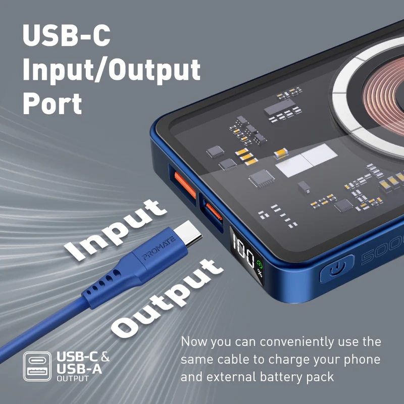 شارژر بی سیم پرومیت مدل TRANSPACK-5.BLUE با باتری داخلی 5000 میلی آمپر ساعت