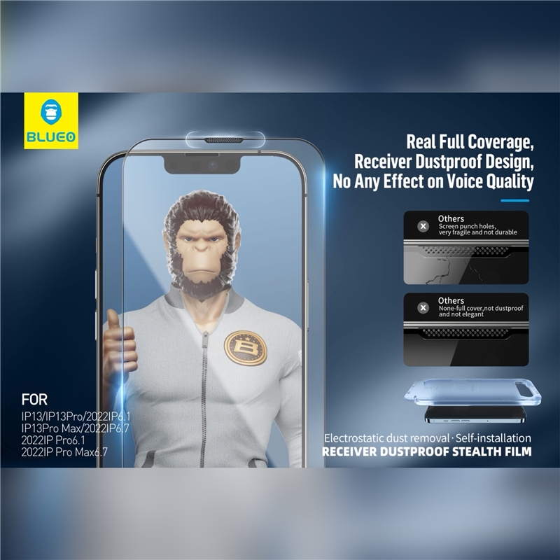 BLUEO Anti dust HD glass anti static with applicator مناسب برای Apple iPhone 14 Plus