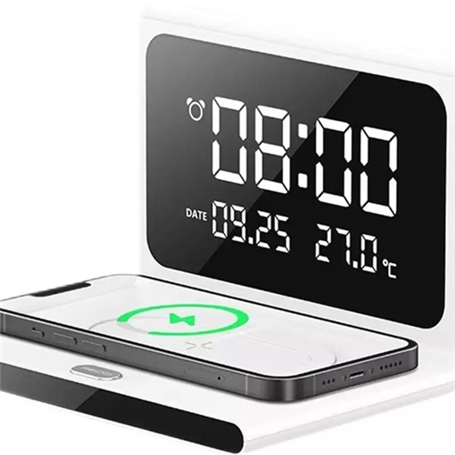 شارژر بیسیم رسی از مواد بسیار مرغوب پلاستیک ABS و اکریلیلک ساخته شده و در برابر ضربه و آسیب مقاوم است؛ طراحی فوقالعادهای دارد و جلوه زیبایی به میز میدهد. رنگ سفید آن با هر رنگی در اتاق یا لوازم روی میز ست بوده و نمایشگری بزرگ برای نمایش ساعت دارد. علاوه بر نمایش ساعت، تاریخ را هم نمایش داده و به صورت هوشمند بر دمای اتاق نظارت داشته و اندازهگیری میکند. در ضمن برای تکمیل کارایی آن از نوری زیبا برخوردار بوده که قابل استفاده به عنوان چراغخواب است و سه سطح از نور را در اختیارمان قرار میدهد.