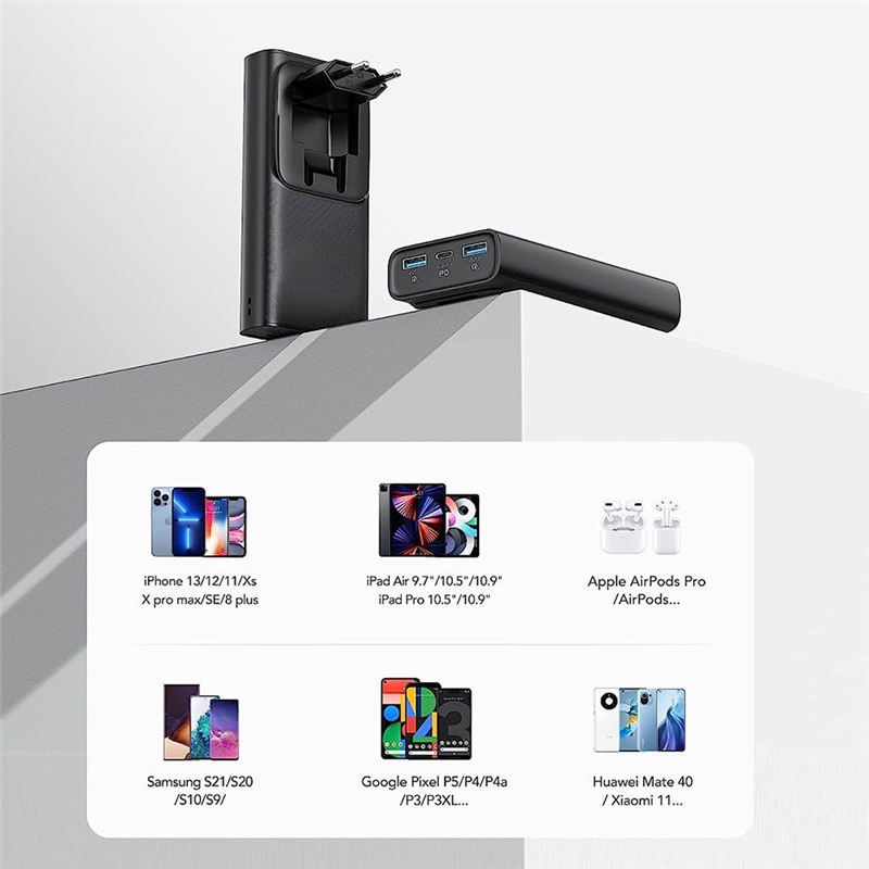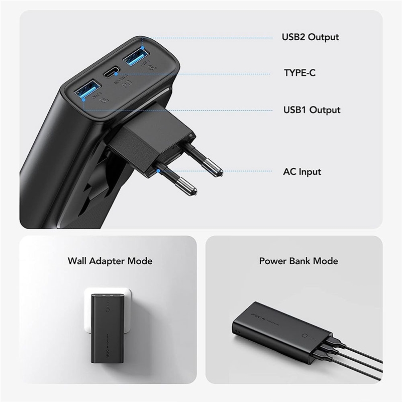 شارژ سریع دو طرفه Type C: پاوربانک USB C از ورودی و خروجی دو طرفه پشتیبانی می‌کند و هر دو از پروتکل شارژ سریع PD+QC3.0 پشتیبانی می‌کنند که زمان شارژ را به طور قابل توجهی کوتاه می‌کند.