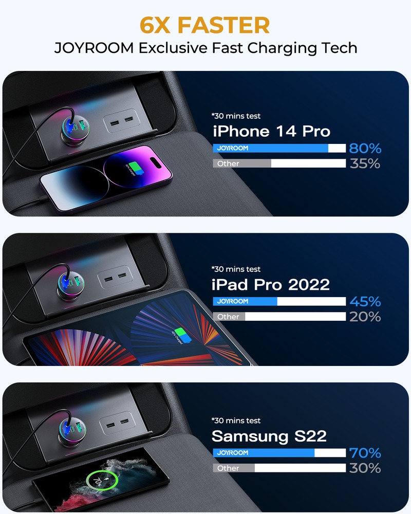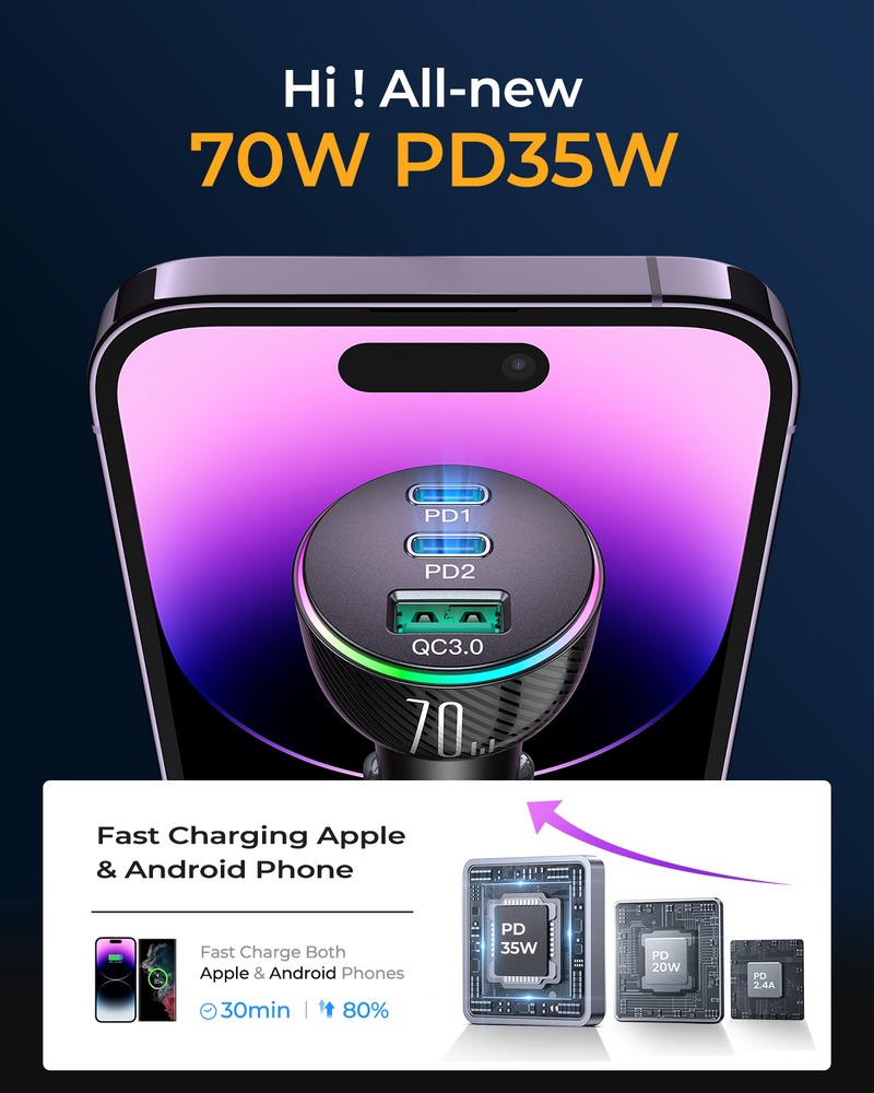 شارژر فندکی 70وات 3پورت جویروم Joyroom CAR CHARGER 70W JR-CL26