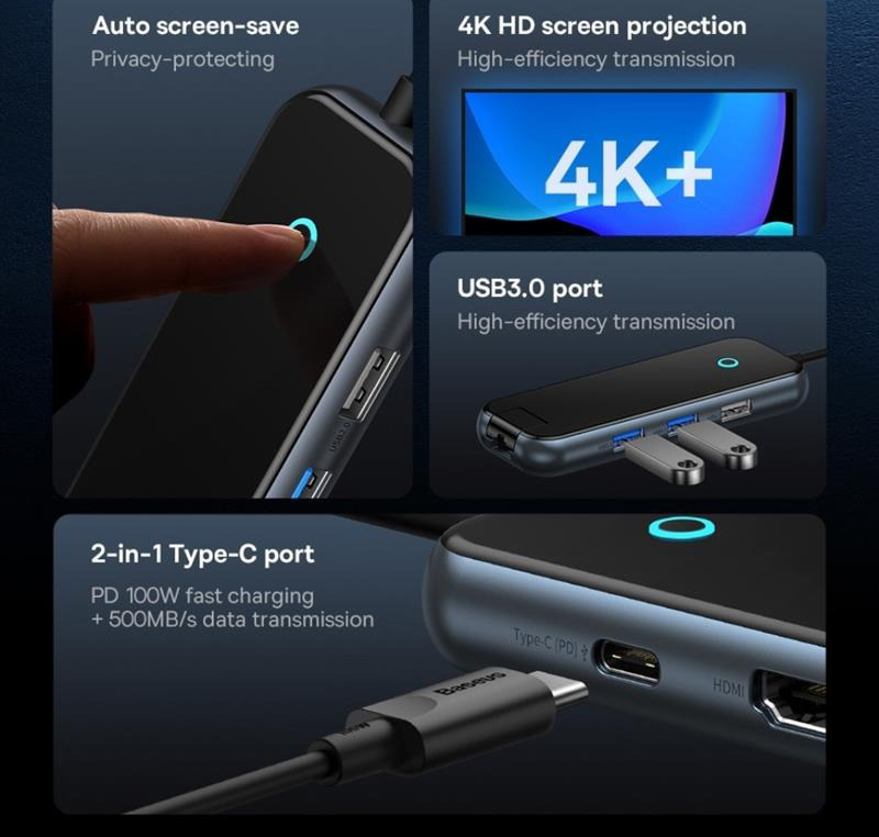 هاب 5 پورت USB-C باسئوس مدل BS-OH088