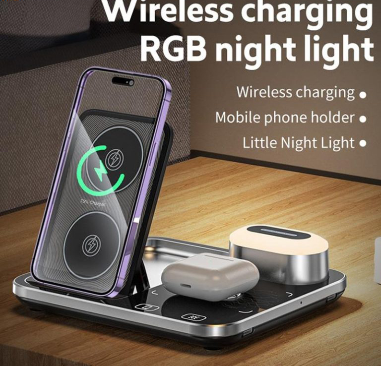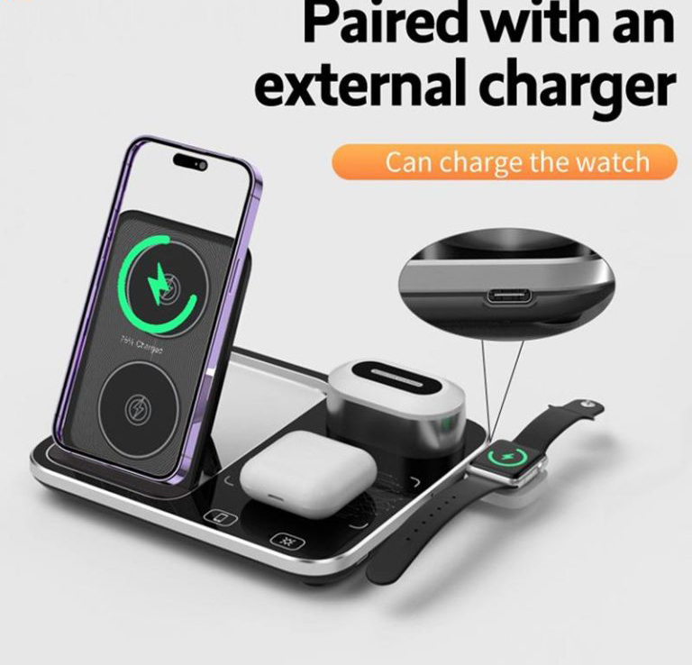 شارژر رومیزی گرین لاین مدل Wireless Charging Station2 – 4 in 1 یک راه راحت و کارآمد برای شارژ کردن دستگاه های شما ارائه می دهد. با ویژگی شارژر رومیزی گرین لاین مدل Wireless Charging Station 2 – 4 in 1، می توانید با کابل های نامرتب خداحافظی کنید و دستگاه های سازگار خود را بدون زحمت شارژ کنید. طراحی نوآورانه آن زیبایی فضای کاری شما را افزایش می دهد و در عین حال یک راه حل شارژ عملکردی را ارائه می دهد. اقدامات ایمنی داخلی، محافظت در برابر شارژ بیش از حد، گرمای بیش از حد و اتصال کوتاه را تضمین می کند و دستگاه های شما را ایمن نگه می دارد. ویژگی بالابر خودکار با یک لمس، حس لوکسی را اضافه می کند و امکان قرار دادن و جدا کردن دستگاه را آسان می کند. شارژر رومیزی گرین لاین مدل Wireless Charging Station 2 – 4 in 1 همه کاره شما را قادر می سازد تا سه دستگاه را به طور همزمان شارژ کنید و برای کسانی که چندین گجت دارند مناسب است. با قابلیت شارژ سریع، به سرعت برق را به تلفن هوشمند شما با 15 وات، ساعت هوشمند 2.5 وات و هدفون شما با 5 وات می رساند.