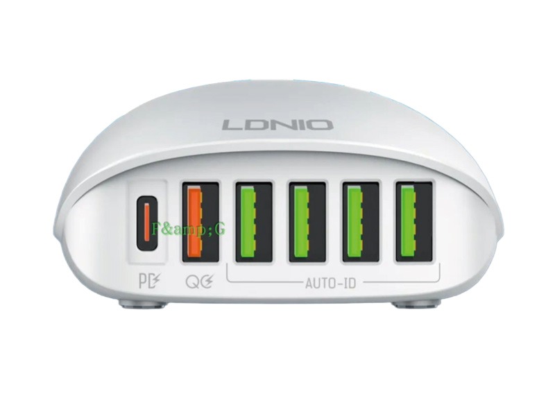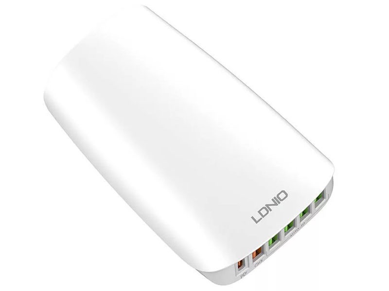 این پاور هاب به 6 پورت مجهز شده است، بنابراین می توانید به راحتی تا 6 دستگاه را به طور همزمان شارژ کنید. A6573C همچنین با سازگاری گسترده خود متمایز می شود. با کمک آن می توانید به راحتی مثلاً گوشی، تبلت، هدفون بی سیم و کنسول نینتندو سوییچ خود را شارژ کنید. علاوه بر این، درگاه Type-C شارژر از شارژ سریع PD با توان 65 وات پشتیبانی می کند این شارژر LDNIO حتی برای لپ تاپ و مک بوک هم به خوبی کار می کند.