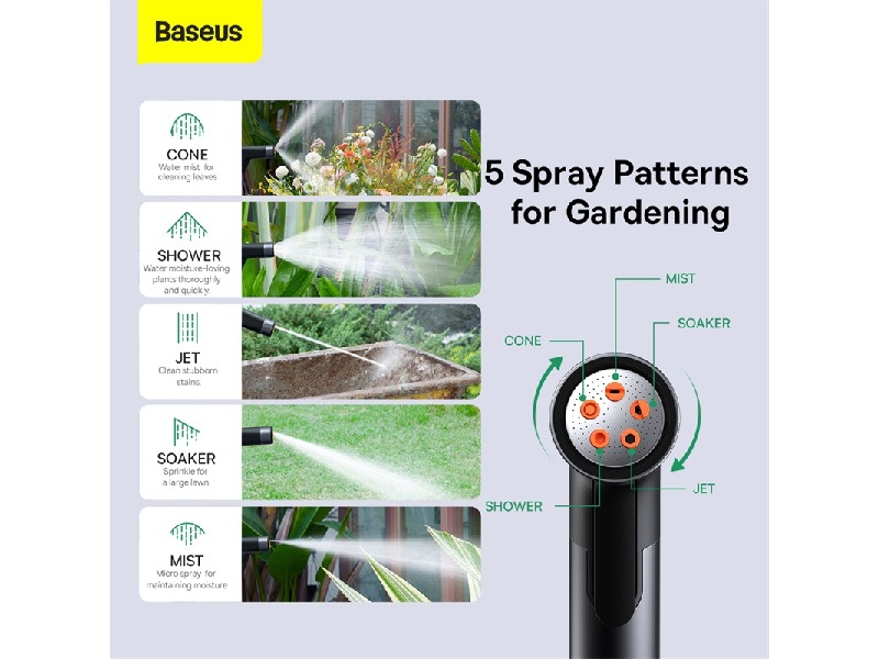 شستشوی خودرو، شستن حیاط و پنجره و آبیاری باغچهها توسط شلنگ آب و با فشار کم شیر آب میتواند غیر ممکن یا بسیار سخت باشد. نازل کارواش Baseus GF4 Horticulture Watering Spray Nozzle CPYY010201 با اتصال به شلنگ آب میتواند میزان فشار آب را بیشتر کرده و با تغییر حالت سری چند حالته آن میتوانید به انجام کارهای مختلف با آن بپردازید.