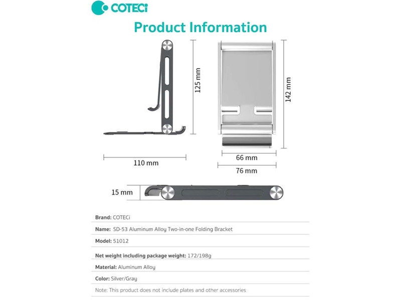 نمونه جذابی از این محصول که دو کارایی را در اختیارتان قرار میدهد توسط کمپانی کوتتسی و با نام تجاری Coteetci SD-53 Aluminum Alloy 2 in 1 Folding Bracket 51012 به بازار عرضه شده است.