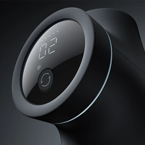 برای نمایش اطلاعات ماساژور تفنگی Xiaomi Fascia Gun Pro نمایشگر دیجیتالی دایره ای روی بدنه تعبیه شده است و یک کلید برای تنظیم عملکرد دستگاه (سرعت ثابت / متغیر) روی آن قرار گرفته است؛ دور تا دور نمایشگر، کلید چرخان وظیفه تنظیم سرعت ماساژور را به عهده دارد. در کنار کلید چرخان یک نوار LED حلقه ای قرار دارد که بسته به میزان فشاری که به عضلات می آورید رنگ عوض می کند. خاموش به معنای کمتر ین فشار، رنگ سفید به معنای فشار متوسط و رنگ نارنجی به معنای فشار بیش از حد است.