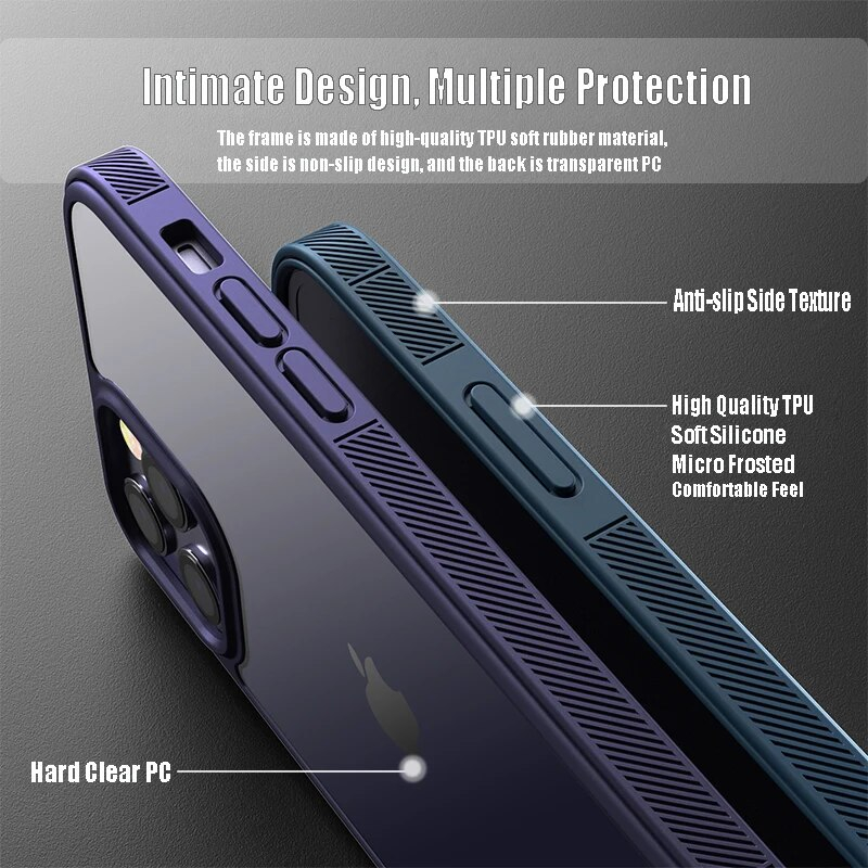 قسمت های از دور فریم قاب شفاف iPhone 13 Pro Max iPaky Guardian به صورت شیار دار طراحی شده که از جنس TPU است؛ جنس و نوع طراحی این قسمت باعث مقاومت بیشتر در برابر ضربه، و جلوگیری از لغزش در دست خواهد شد.