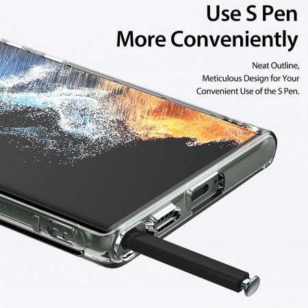 یک مزیت دیگر که می‌توان برای قاب محافظ آراری S22 Ultra عنوان کرد، محافظت بهتر است از صفحه نمایش است؛ به این ترتیب که اگر صفحه گوشی را با وجود این قاب روی سطوح صاف قرار دهید، نمایشگر گوشی ارتباط مستقیمی با آن سطح نخواهد داشت، در نتیجه از خط و خش افتادن روی آن به این ترتیب جلوگیری خواهد شد.