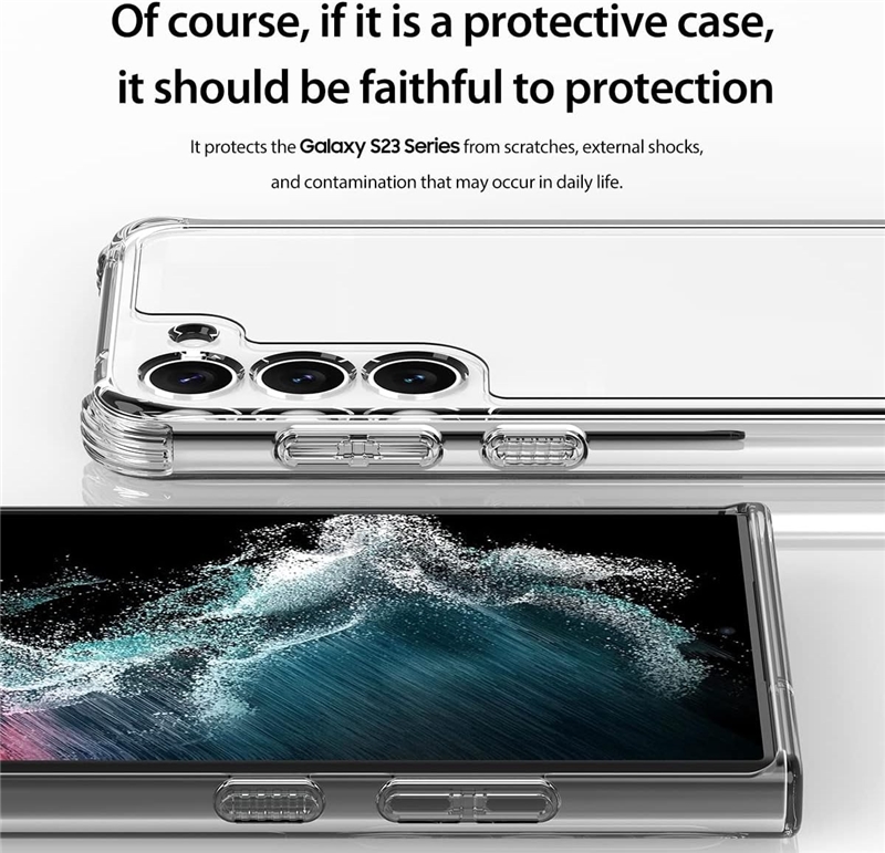 مراقبت از لنز دوربینها، آن هم سامسونگ S23 Ultra که لنزهای بزرگی در قسمت پشتی بدنهاش دارد کاملا منطقی به نظر میرسد. قاب سامسونگ S23 Ultra Araree Flexield دارای فریمی دور لنزها برای محافظت از دوبین گوشی است. این فریم چند میلی متر از سطح دوربین بالاتر است تا امکان اصابت اجسام را کاهش دهد. بعلاوه برای محافظت از صفحه نمایش لبه های قاب نیز چند میلی متر بالاتر از صفحه نمایش قرار دارد تا حد امکان از وارد شدن ضربه به صفحه نمایش جلوگیری کند.