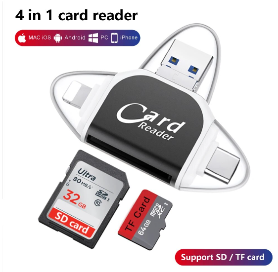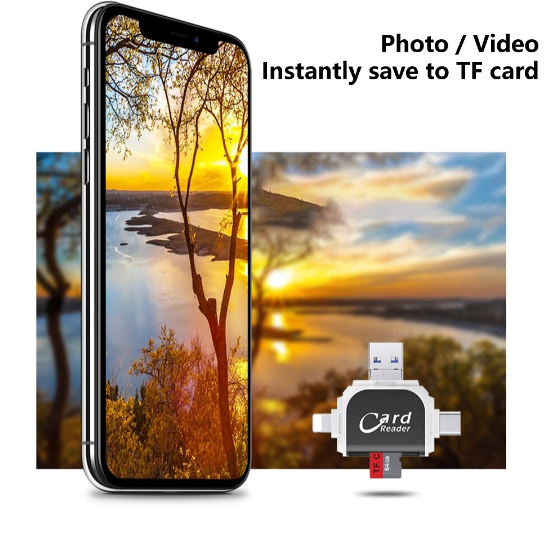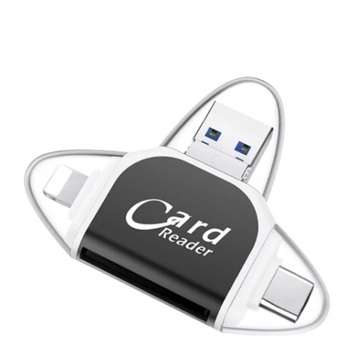 رم ریدر Coteetci 83014 دارای چهار کانکتور بوده که این پورتها شامل میکرو ، لایتنینگ ، تایپ سی و یو اس بی میباشند. میتوانید کانکتور USB این رم ریدر را به یک کانکتور Micro USB تبدیل کنید.