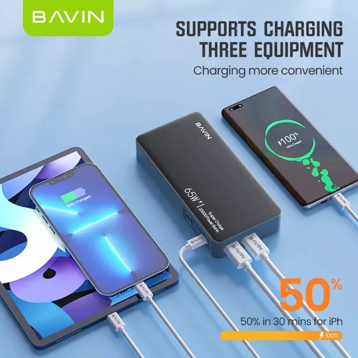 پاوربانک این روزها از ضروری ترین وسایل همراه ما به حساب می آیند. پاوربانک Bavin PC036 با داشتن 3 پورت خروجی ، حداکثر توان خروجی 65 وات و ظرفیت اسمی 20000 میلی آمپر ساعت می‌ تواند همراه خوبی برای شما باشد. داشتن نشانگر دیجیتالی برای نمایش باتری کامل کننده ویژگی های این پاوربانک است.
