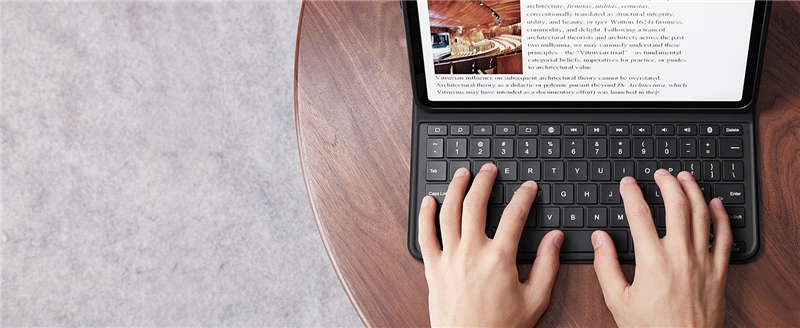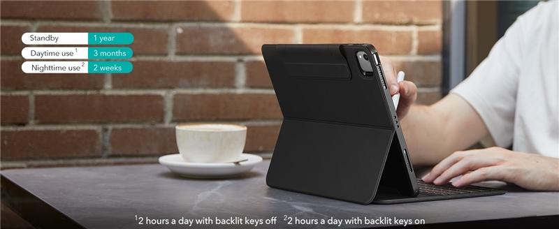 کاور و کیبورد Ascend Lite با طراحی خاص و فوقالعاده سبک، امکان حمل آسان در کنار آیپد را فراهم میکند. شما میتوانید آن را به راحتی در یک کیف بگذارید یا حتی آن را زیر بازوی خود حمل کنید. این ویژگی به شما این امکان را میدهد که همیشه و هرجا که هستید، برای کار آماده باشید.