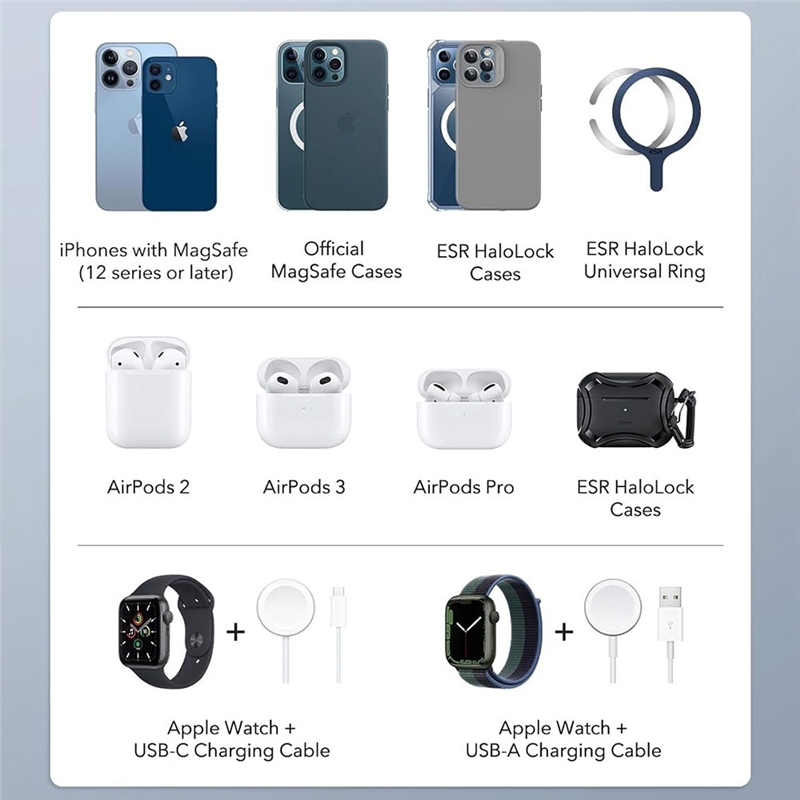 قابلیتهای شارژر ESR HaloLock™ 3-in-1: