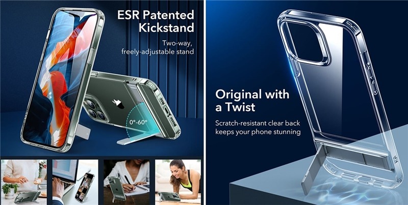 قاب ESR Air Shield Boost آیفون 13 کریستالی شفاف می باشد که قسمت پشتی آن محکم است اما بامپری نسبتا انعطاف پذیر دارد تا گوشی به آسانی درون آن قرار بگیرد. این قاب کاملا با شارژر وایرلس اپل و سایر شارژر وایرلس ها سازگار می باشد. همجنین این قاب دارای Air-Guard در گوشه های خود برای دفع ضربه و فشار می باشد. کیک استند نگهدارنده گوشی به حالت های عمودی و افقی از ویژگی های مدل Air Shield Boost است.
