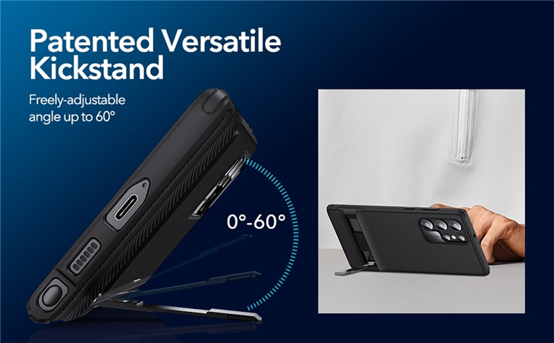 یکی از ویژگی های برجسته قاب Air Shield Boost کیک استند آن می باشد که به نگهداری گوشی به صورت افقی یا عمودی کمک خواهد کرد. این استند نگهدارنده از 30 درجه تا 60 درجه قابلیت باز و بسته شدن دارد تا بهترین زاویه دید را انتحاب کنید.