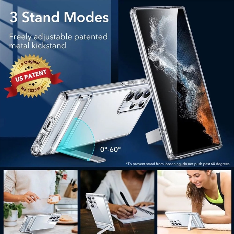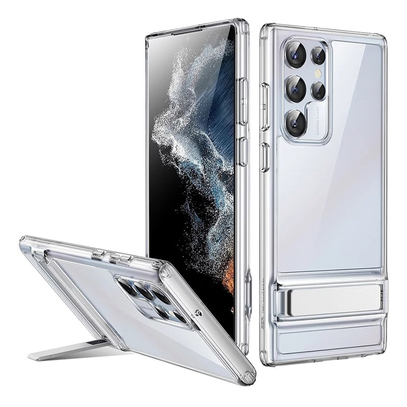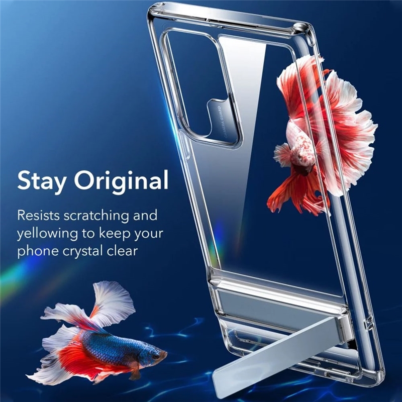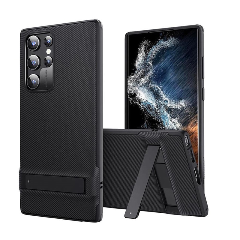 “قاب ESR Air Shield Boost سامسونگ S22 Ultra” در دو رنگ مشکی با متریال نرم و انعطاف پذیر و کریستالی شفاف می باشد که قسمت پشتی آن محکم و از متریال Acrylic است اما بامپری نسبتا انعطاف پذیر دارد تا گوشی به آسانی درون آن قرار بگیرد. این قاب دارای Air-Guard در گوشه ها می باشد تا از گوشی به بهترین شکل در برابر ضربه و شوک محافظت کند. همچنین یکی از ویژگی های این قاب استند نگهدارنده آن می باشد.