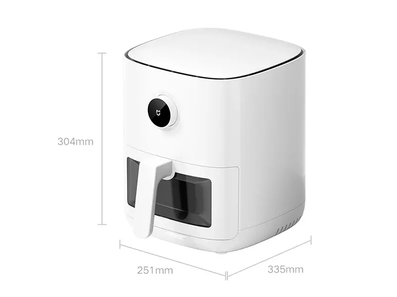 دستگاه سرخکن بدون روغن شیائومی مدل MAF04 با بدنهای سفید رنگ از پلاستیک ABS مرغوب ساخته شده است و مقاومت بسیار بالایی در برابر ضربه دارد. بدنه با یک نمایشگر دایرهای زیبا تزیین شده است. دستگیرهای هم برای آن طراحی شده تا به راحتی بتوانید درب بخش سرخ کن غذا را باز کنید. ابعادی برابر با 251×335×304 میلیمتر و فضای کمی از آشپزخانه را اشغال میکند و به راحتی روی میز یا کابینت جا میگیرد. سطح زیرین آن دارای پایههایی محکم است، بنابراین میتوانید به آن اعتماد کنید و آن را با خیال راحت روی سطوح مختلف قرار بدهید. این وزن 3.9 کیلوگرم آن هم جابهجایی آسان را به دنبال دارد.