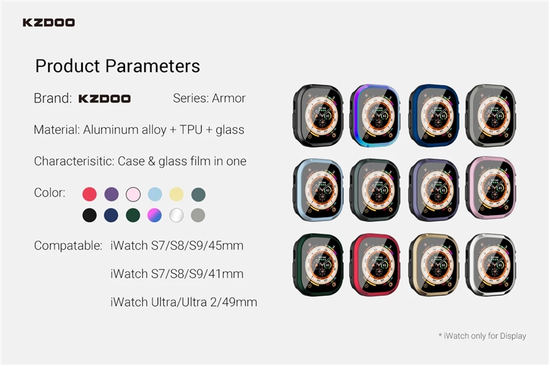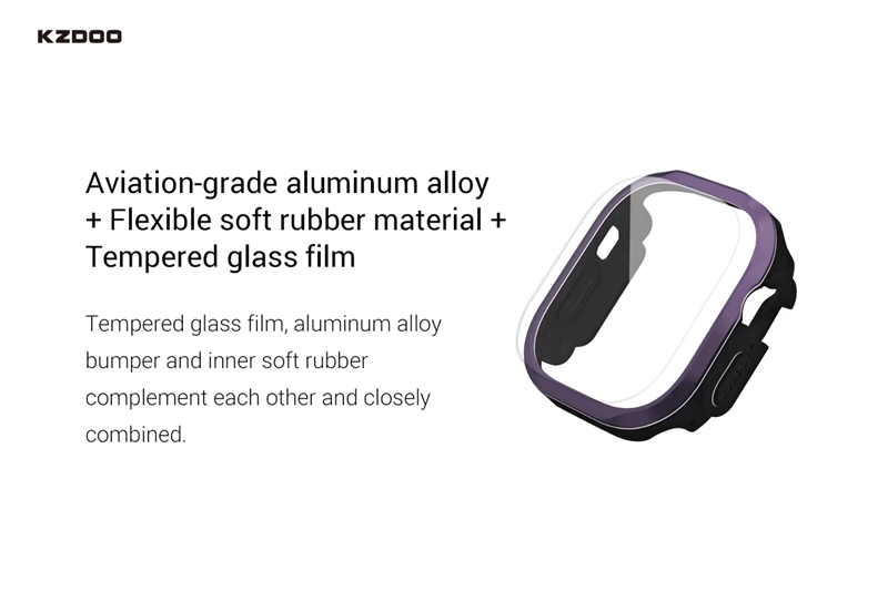 کاور آلومینیومی بهمراه گلس برند KZDOO مدل Armor مناسب برای Apple Watch Ultra 49mm
