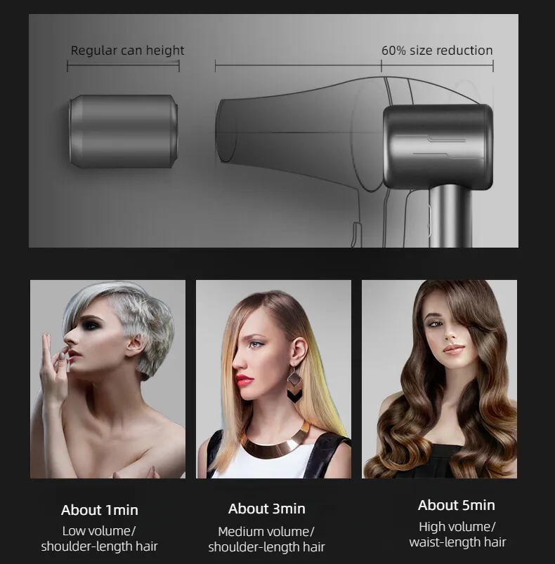توان خروجی این سشوار 1500 وات و همچنین موتور آن با سرعت چرخش برابر با 120 هزار دور بر دقیقه دارد. این مشخصات تضمین کننده خشک شدن سریع و موثر است موها است. قدرت این سشوار به حدی زیاد است که ظرف 2 دقیقه موهای خیس شما را به طور کامل خشک میکند. در کنار این قدرت بالا، این سشوار فوقالعاده کمصدا است و در نتیجه لازم نیست نگران بیدار شدن دیگران از خواب باشید.