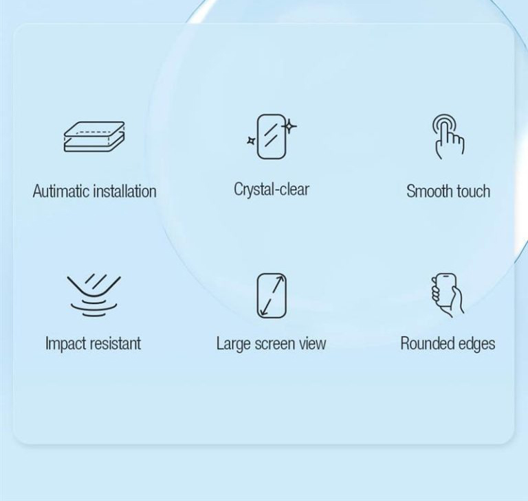 ویژگی‌ها9H, جلوگیری از انعکاس نور, جلوگیری از ایجاد خط و خش, قابلیت نصب آسان, مقاوم در برابر چربی و اثرانگشت, مقاوم در برابر خط و خش, نصب بدون حباب
