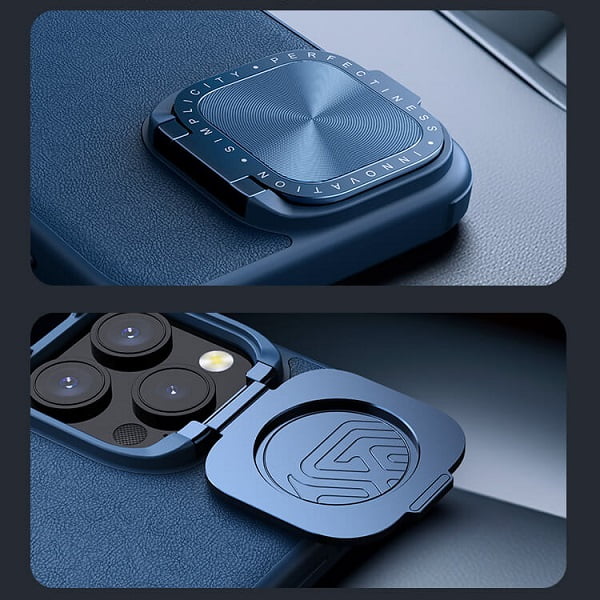 دوست دارید بهصورت همزمان هم از بدنه گوشی و هم از لنز دوربین آن محافظت کنید؟ خرید قاب چرمی نیلکین گوشی اپل آیفون iPhone 15 Pro Max گزینهی امن و مناسب برای اسمارت فون شما خواهد بود. اگر بخواهید یک گلس برای لنز دوربین گوشی موبایلتان بخرید، امنیت آن را تضمین کردهاید. اما در نظر داشته باشید نصب گلس روی لنز دوربین از هر نوعی که باشد تا حدی کیفیت دوربین را کاهش خواهد داد. این کاور محافظ نه تنها پشت گوشی و اطراف آن را پوشش میدهد، بلکه مجهز به یک کاوری است که از لنز دوربین محافظت میکند. در مواقع لازم نیز میتوانید بهراحتی آن را باز کرده و به عنوان استند از آن استفاده کنید.