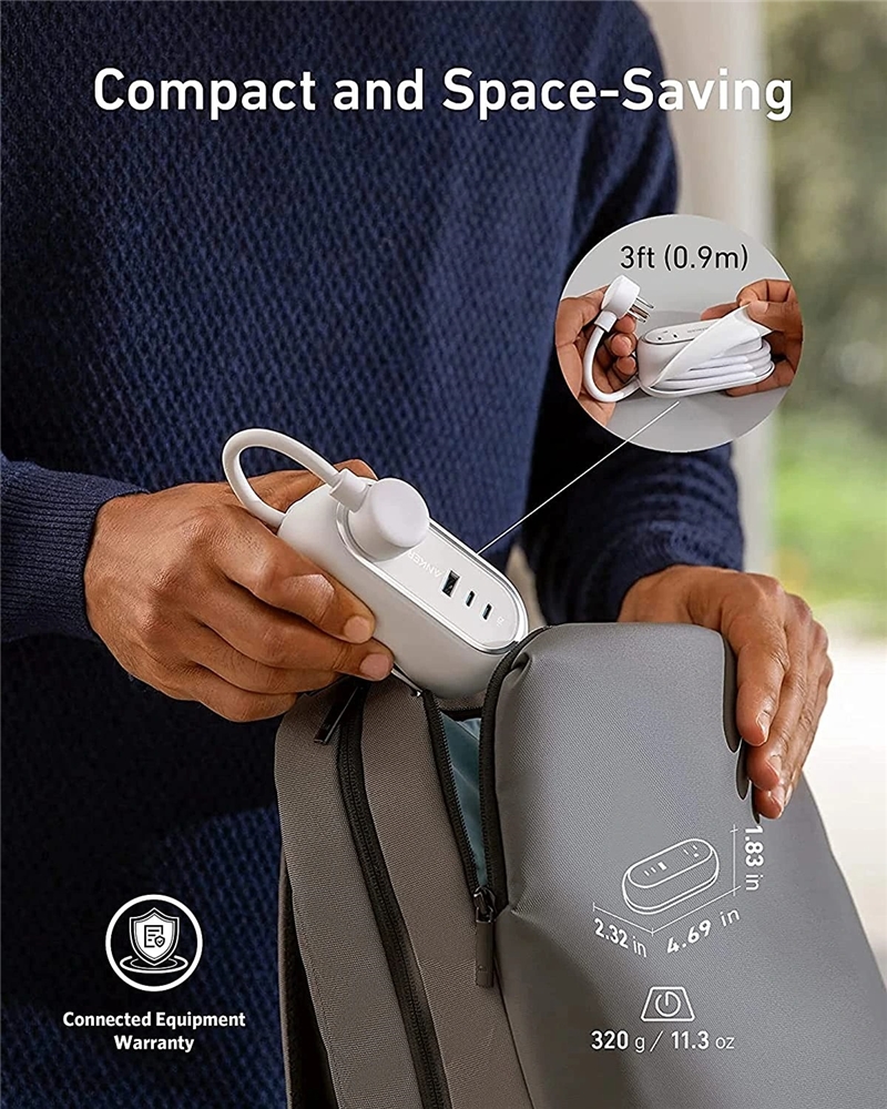 این چندراهی برق و شارژر انکر در بدنه خود، 2 پورت تایپ سی USB-C، یک پورت USB-A و 2 خروجی AC را شامل شده است. به این ترتیب میتوان به طور همزمان 5 دستگاه نظیر یک وسیله برقی مثل ریش تراش، یک لپ تاپ، یک گوشی و هندزفری بلوتوثی را شارژ کرد. امکان شارژ همزمان 5 دستگاه با چنین محصول جمعوجوری به نوبه خود یک مزیت عالی به شمار میرود. سری یا پلاگ اصلی این محصول نیز سه شاخه بوده و برای استفاده در ایران به تبدیل دوشاخه نیاز دارد تا متناسب با سیستم برق ایران شود. این محصول در رنگ همهپسند سفید و مشکی طراحی شده و با ظاهر شیک و مینیمال خود، میتواند در هر موقعیتی به راحتی استفاده شود.