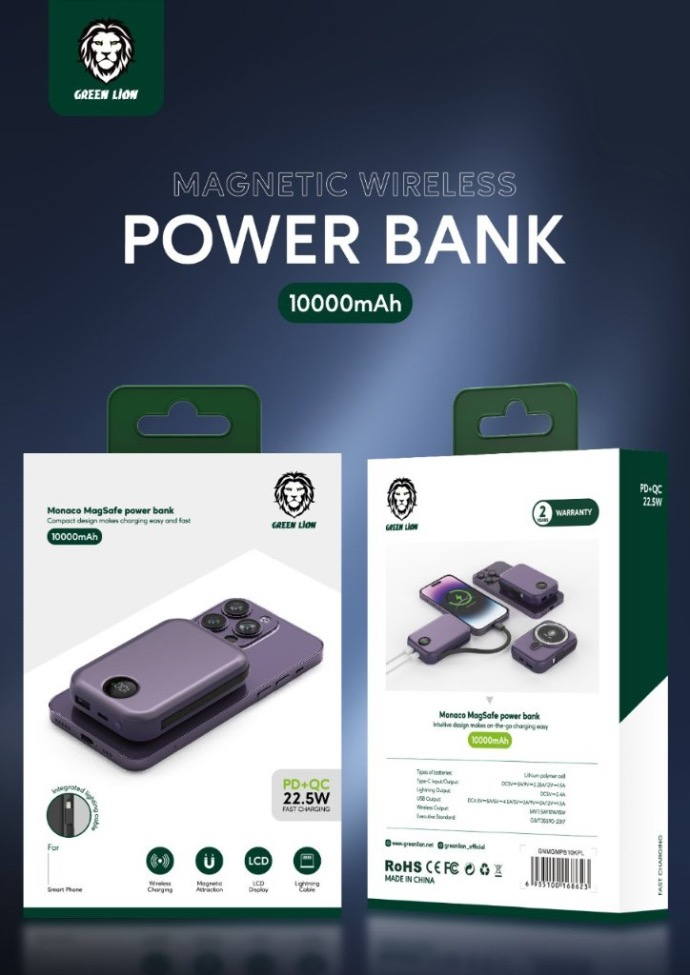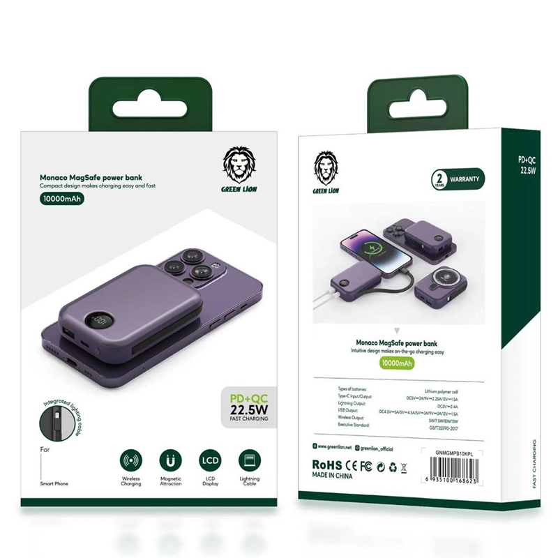 پاوربانک 20000 مگ سیف همراه با کابل تایپ سی گرین لاین Green Lion Monaco MagSafe Powerbank