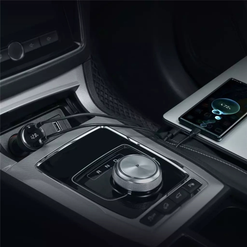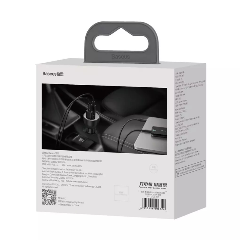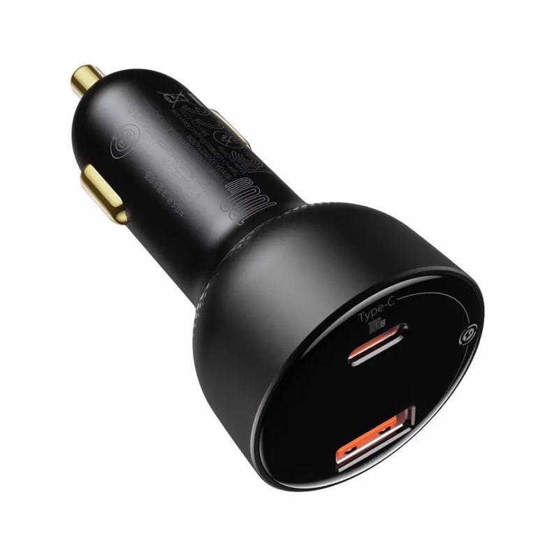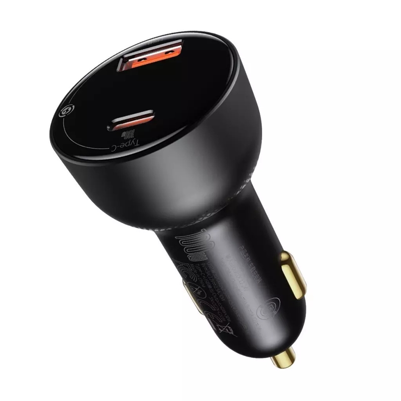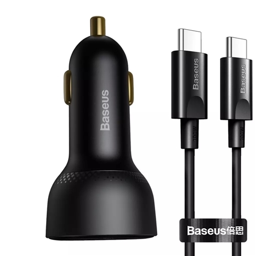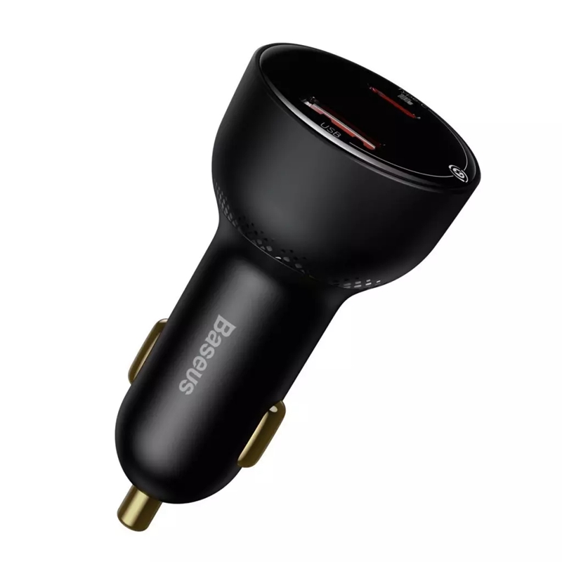 شارژر فندکیBaseus Superme Digital Display TZCCZX-01 دارای دو خروجی Type-C و USB جهت شارژ سریع همزمان دو دستگاه است.