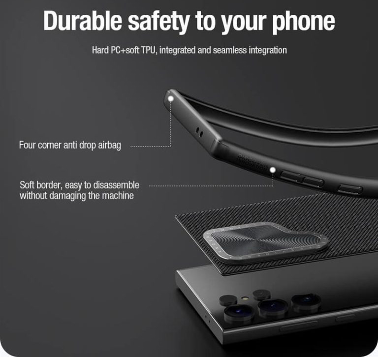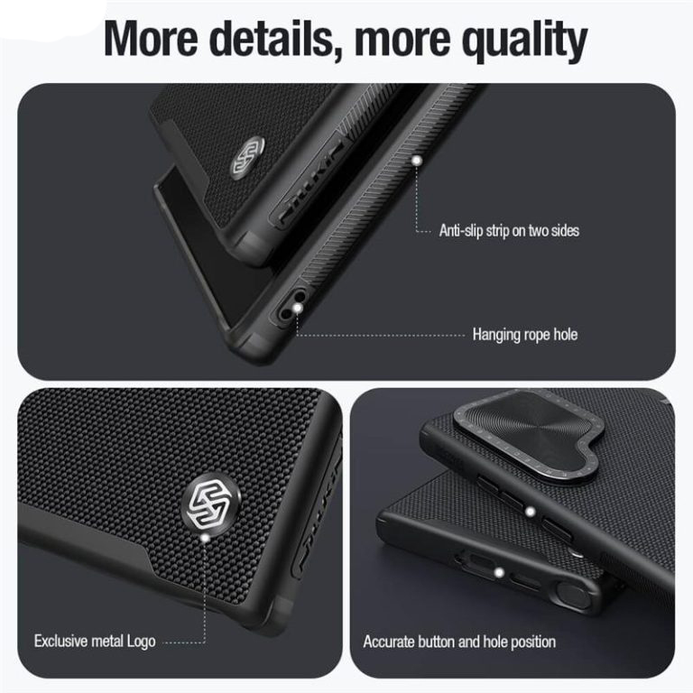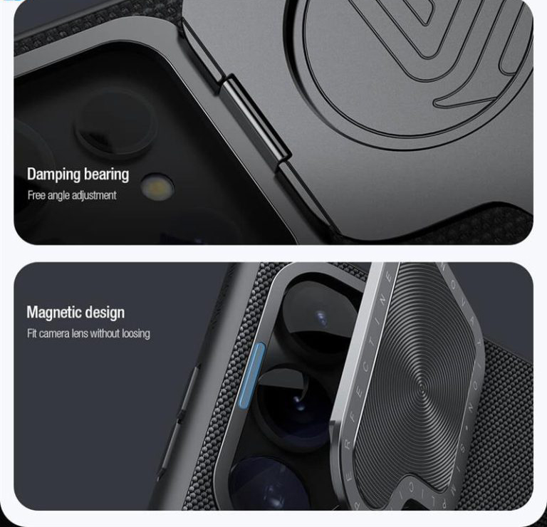 یک ضربه محکم یا یک خراش کوچک ممکن است به بدنهی براق موبایلتان آسیب بزند.حتی اگر شدت ضربه بالا باشد،احتمال صدمه به اجزای داخلی موبایل وجود دارد.تنها راهی که میتوانید از آن محافظت کنید،استفاده از یک قاب محکم است.کاور نیلکین مدلTextured Propگزینهای مطمئن است که به بهترین شکل امنیت موبایلتان تامین میکند.کاور نیلکین مدلTextured Propبا قالبگیری یکپارچه، از مواد سختی چون پلی کربنات و مواد انعطافپذیرTPUتولید شده است. موادPCباعث افزایش مقاومت قاب شده و موادTPUانعطاف بالایی رابه این قاب میدهد و جداسازی آسان بدون آسیب رساندن به دستگاه را فراهم می آورد همچنین تعبیه ایربگ در چهار گوشه قاب آن را در برابر ضربه مقاوم ساخته است.استفاده از این مواد در قاب باعث میشود گوشی شما از هر لحاظ ایمن باشد و حفاظت کامل360درجه از آن تضمین میگردد.نیلکین در ساخت کاور نیلکین مدلTextured Propبایک خلاقیت در طراحی محافظ لنزش، استفاه از آن را برای شما جذابتر و راحتتر کرده است.این قاب دارای یک پایه تاشو مخفی برای محافظت از لنز و عملکردهای پشتیبانی است. شما میتوانید لنز دوربین را به آرامی باز کنید .از آن به عنوان هولدر موبایل استفاده نمایید.دستان شما برای انجام امورتان آزاد است!توجه داشته باشید که هنگام بستن این براکت،لطفا گوشههای بالا و پایین رابه طور همزمان فشار دهید تاآن رامحکم ببندید و ازتاب برداشتن لبه جلوگیری شود.کاور نیلکین مدل Textured Prop از مواد با کیفیت و بسیار مرغوبی تولید شده است.فرآیند بافت سه بعدی به طور متراکم باسوراخهای کوچک پوشیده شده و این قاب را در برابر عرق مقاوم کرده است. کاور نیلکین مدلTextured Prop، ضداثر انگشت و ضدلغزش بوده و با لبههای گرد تجربه عالی را برای شما فراهم میآورد.وجود نوارهای ضدلغزش در دو طرف قاب اصطکاک را افزایش میدهد و چسبندگی راحت و مطمئنی رافراهم میکند و اصطکاک رابرای جلوگیری از لیز خوردن و افتادن افزایش میدهد.در صورت تمایل می توانید این درپوش را کنار زده و از دوربین خود استفاده کنید.از این درپوش می توان به عنوان استند استفاده کرد و گوشی را روی سطح قرار داد.