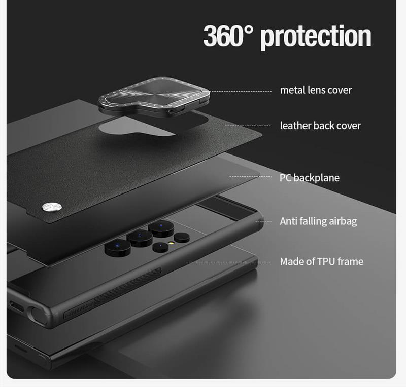 دوست دارید بهصورت همزمان هم از بدنه گوشی و هم از لنز دوربین آن محافظت کنید و بدون نیاز به خارج کردن گوشی همراه از قابلیت های MAGSAFE استفاده کنید؟ انتخاب یک قاب از میان گزینههای مختلف کار مشکلی است. کاور نیلکین مدل Camshield Prop Leather Magnetic یک انتخال شیک و جذاب برای تمامی افراد با سلایق مختلف است که ظاهری کلاسیک به استایل شما میبخشد. تفوات ان با مدل عادی در داشتن MagSafe است مه در پشت کاور وجود دارد. این کاور محافظ نه تنها پشت گوشی و اطراف آن را پوشش میدهد، بلکه مجهز به یک پوشش فلزی است که از لنز دوربین محافظت میکند. در مواقع لازم نیز میتوانید بهراحتی آن را باز کرده و به عنوان استند نیز از آن استفاده کنید.این کاور گوشی از ترکیب چهار متریال چرم، پلی کربنات، تی پی یو و فلز (قسمت مربوط به دوربین) ساخته شده است. کلیت کاور از TPU و PC با کیفیت و سازگار با محیط زیست تولید شده و قسمت دوربین پشت، از آلیاژ بسیار با کیفیتی طراحی و ساخته شده است.اصلیترین دلیل نام گرفتن کاور نیلکین مدل Camshield Prop Leather ، همین قابلیت محافظت از لنز دوربین گوشی است.کاور نیلکین مدل Camshield Prop Leather Magnetic، بهصورت دقیق و حرفهای قالبگیری شده است. با ابعاد این گوشی سازگاری دارد و پورتهای شارژر، اسپیکر کاملا در دسترس قرار دارند. سطح خارجی از چرم مصنوعی مات و ضد عرق و سرخوردگی بوده و از این رو از افتادن خط و خش بر روی گوشی جلوگیری می کند.قسمت مربوط به دوربین به نحوی طراحی شده است که قابلیت باز و بسته شدن را دارد و همچنین می توان از آن به عنوان استند استفاده کرد و کار با گوشی را برای کاربر راحت تر کرد و بسته چفت میشود.از دیگر ویژگی های جذاب این کاور ، پشتیبانی آن از شارژر بی سیم هست که می توانید بدون درآوردن قاب از روی گوشی، دستگاه خود را شارژ نمایید.با نصب این کاور، بدنه گوشی، دوربین و لبههای آن از ضربه و خط و خش در امان خواهند بود. این قاب ، دارای جنسی بسیار مرغوب می باشد که هم ظاهر بسیار زیبایی دارد و هم اینکه تا حد زیادی گوشی را از آسیب های احتمالی ایمن نگه می دارد.با خرید کاور Camshield Prop Leather Magnetic میتوانید ظاهری جذاب و لوکس برای گوشی موبایلتان در نظر بگیرید. هرچند که این قاب تنوع رنگ کمی دارد، با این حال رنگبندی عرضه شده برای آن خاص و منحصربفرد است.