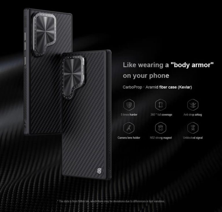 به دنبال خاص ترین اکسسوری ها برای گوشی همراه پرچم دار خود هستید ؟ برند نیلکین مثل همیشه پاسخ گوی نیاز شماست. نیلکین با تولید کاور CarboProp Magnetic MagSafe Aramid سطح جدیدی از ترکیب زیبایی و حفاظت را به نمایش گذاشته است. طوری که این کاور در دسته خاص ترین گزینه ها برای گوشی های موبایل پرچم داری همچون Samsung Galaxy S24 Ultra قرار میگیرد. تفاوت این مدل با مدل عادی آن در داشتن حلقه MagSafe در قسمت داخلی کاور است که با کنار هم آمدن 18 قطعه کوچک مگنتی طراحی و به طرز دقیقی کار شده است. شارژ بی سیم و استفاده از هر تکنولوژی MagSafe را به راحتی انجام دهید. نیلکین برای ساخت این کاور سنگ تمام گذاشته است. استفاده از تکنولوژی روز دنیا و متریال اولیه مرغوب و باکیفیت همچون فیبر کربن که به گفته شرکت سازنده مقاومتی 5 برابر بیشتر از استیل دارد این کاور را به گزینه ای فوقالعاده تبدیل کرده است. از سه لایه تشکیل شده است.خارجی ترین لایه آن یک محافظ لنز فلزی به شکل پنجره ای است که طرح جذاب لوگو نیلکین را در قسمت داخلی و تکسچری زیبا در قسمت خارجی خود دارد. این محافظ لنز تضمین میکند که حتی در برابر شدیدترین ضربات لنز های گوشی همراه شما که یکی از حساس ترین قسمت های گوشی هستند به خوبی حفظ میکند.بدون انکه کوچکترین خطی روی آن ها بیافتد و همچنین قابل استفاده بصورت استند با زاویه دلخواه هست و به صورت مگنتی محکم چفت میشود.در لایه بعدی متریال شاهکار استفاده شده روی این کاور را مشاهده میکنیم که با استفاده از اخرین تکنولوژی روز دنیا از فیبر کربن فشرده شده ساخته شده است و مقاومتی بی نظیر را ارائه میدهد. این متریال در صنعت نظامی بکار میرود و این بار نیلکین آن را در ساخت یک کاور بکار برده است که آن را بی نظیر میکند. در لایه اخر که دور تا دور و داخل کاور را در بر گرفته است از TPU نرم و انعطاف پذیر استفاده شده و در داخل مگنت کار شده و پوششی 360 درجه را فراهم کرده است.لبه ها نیز به شکلی انعطاف پذیر هستند که بتوانید گوشی همراه را به راحتی داخل و خارج کنید. برش های بسیار دقیق دسترسی ها را به تمامی درگاه ها آسان کرده است و به صورت دقیق به میزان 0.5 میلیمتر از لبه ها بلند تر در نظر گرفته شده تا از تماس مستقیم صفحه نمایش با سطوح جلوگیری شود و هیچ تاثیری روی نصب گلس روی گوش ندارد و کاملا استاندارد است.