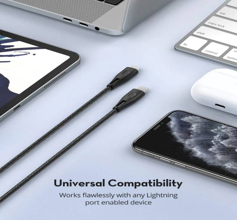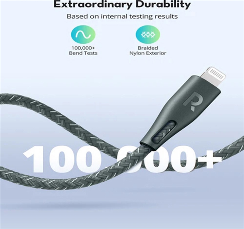 جنس روکش سیم از نایلون بافته شده تا 100 هزار مرتبه تحمل خمش طول کابل 1.2 متر دارای تاییدیه MFI اپل پشتیبانی از فستشارژ PD پشتیبانی از انتقال اطلاعات با سرعت بالا