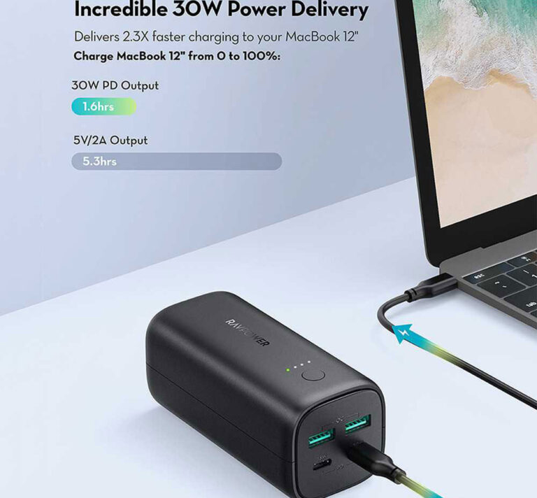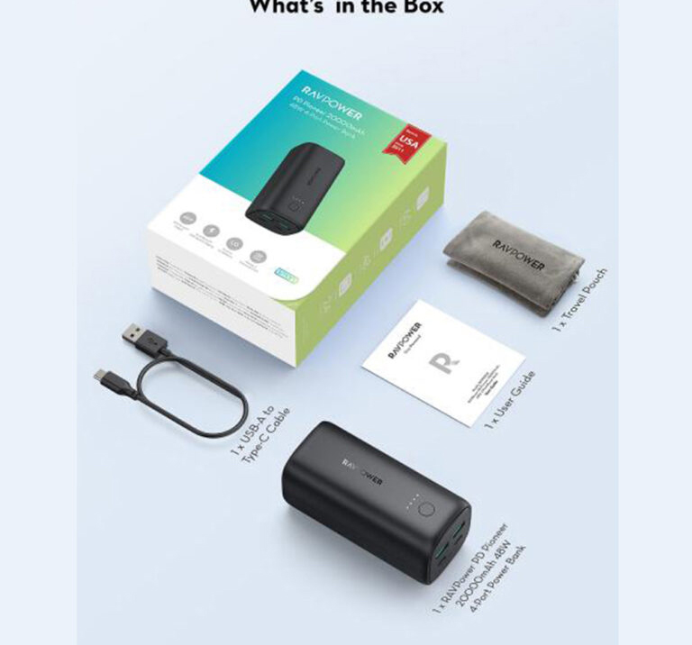 پاوربانک ۲۰۰۰۰ میلیآمپر راوپاور مدل RP-PB208 بهشکلی باریک طراحی شده و وزن سبکی نیز دارد.