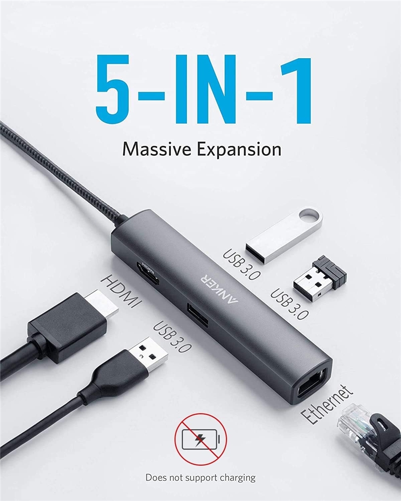 هاب تایپ سی 5 پورت نسل پنج انکر Anker 533 USB-C Hub (5-in-1, Slim) – مدل A8338