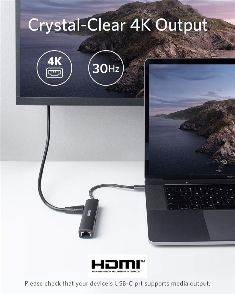 با 3 پورت USB به سرعت انتقال داده 5 گیگابیت بر ثانیه دسترسی پیدا کنید یا به پورت HDMI متصل شوید تا ویدیوها را با وضوح شفاف 4K در 30 هرتز پخش کنید.